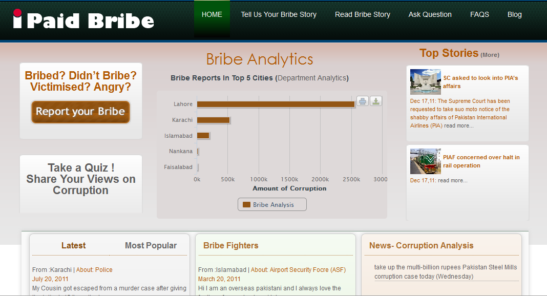 Ipaidabribe is a unique initiative to tackle corruption by collecting the energies of citizens on a single platform.